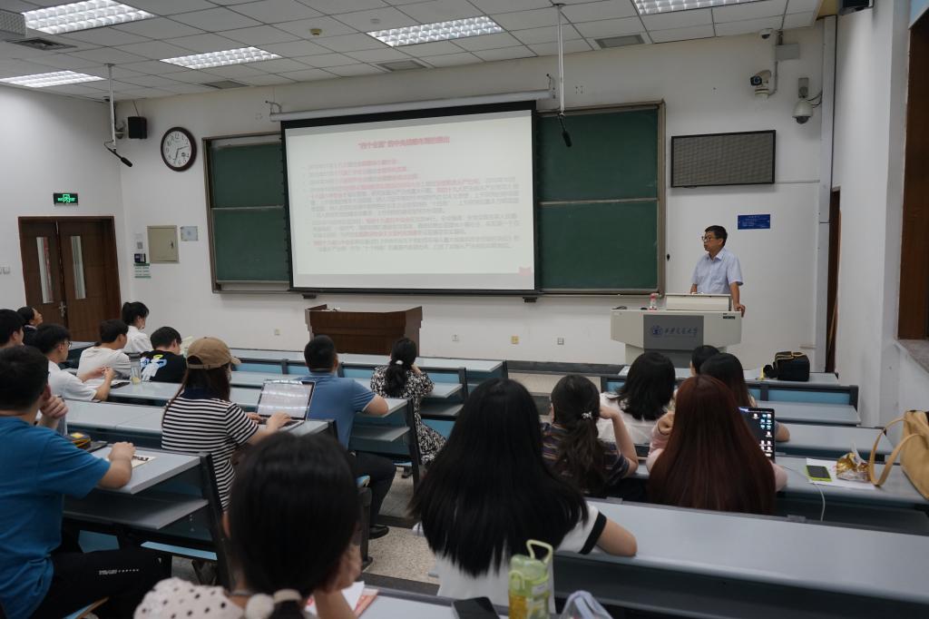 2023年6月28日下午,江南网页版登录入口党总支书记王保民为立法与党内法规研究中心党支部、行政党支部党员讲主题教育专题党课。