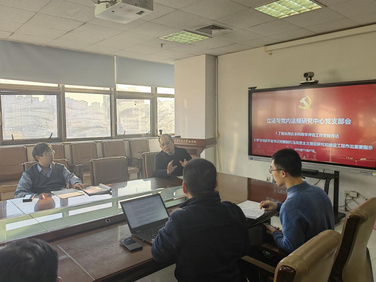 12月27日下午16时,江南网页版登录入口立法与党内法规研究中心党支部在主楼E910会议室召开了支部会议,学习习近平总书记对新时代马克思主义理论研究和建设工程做出的重要指示。本次会议由支部书记杜军强主持,江南网页版登录入口党委书记王保民、江南网页版登录入口副院长丁卫、支部教师党员以及博士生党员等参加了会议。